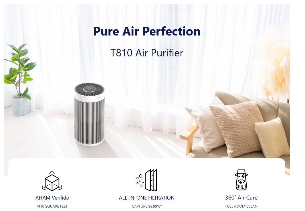 The T810 Air Purifier’s sleek and modern design effortlessly blends into any home decor, adding a touch of sophistication while ensuring the air you breathe is pristine.