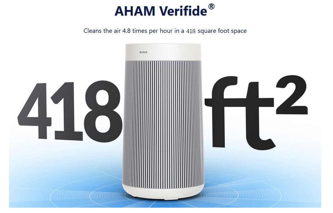 AHAM Verified at 418 sq ft: Also cleans rooms up to 1,968 sq ft in 1 hour (984 sq ft in 30 minutes, 656 sq ft in 20 minutes, 492 sq ft in 15 minutes)
